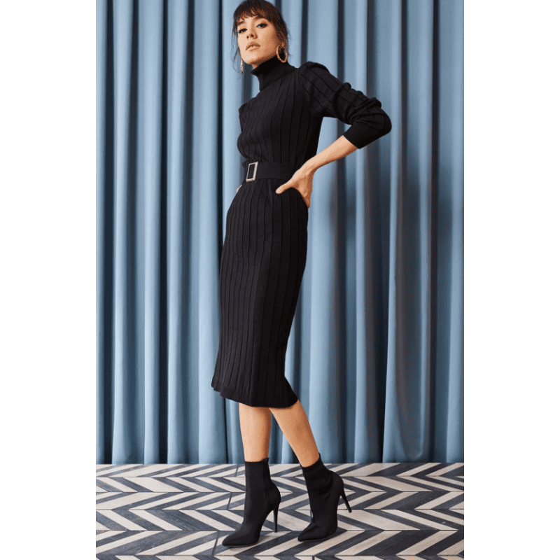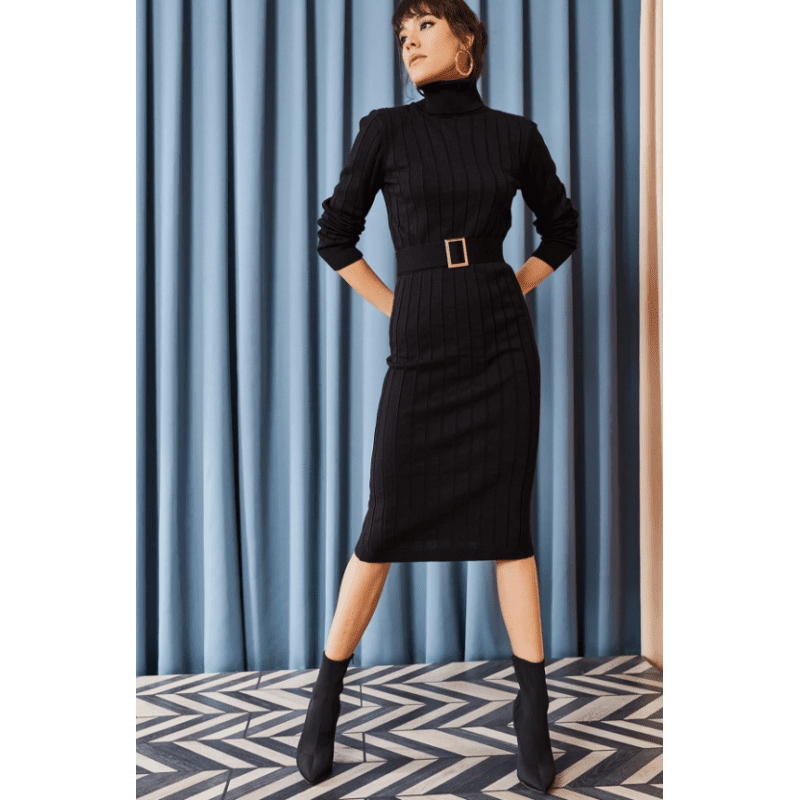 فستان ستاتي شتوي أسود