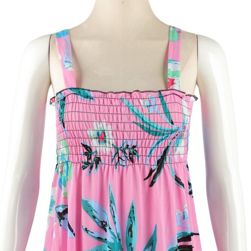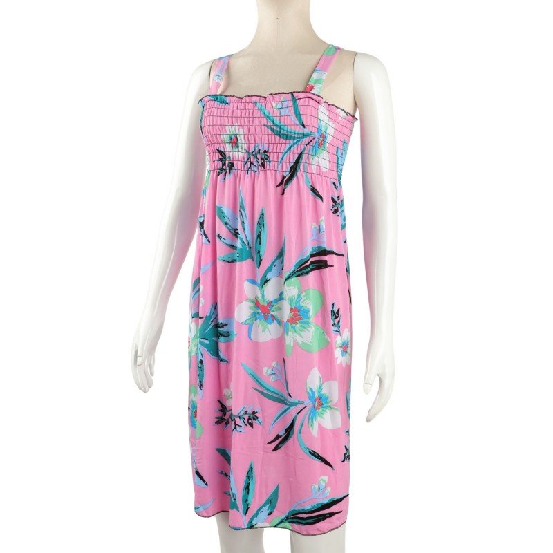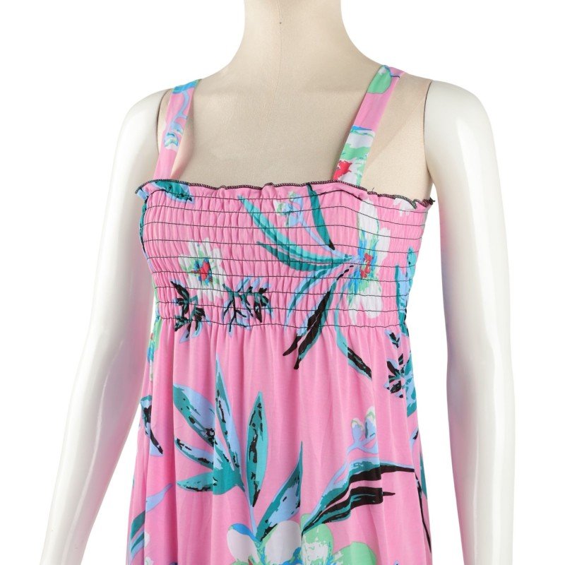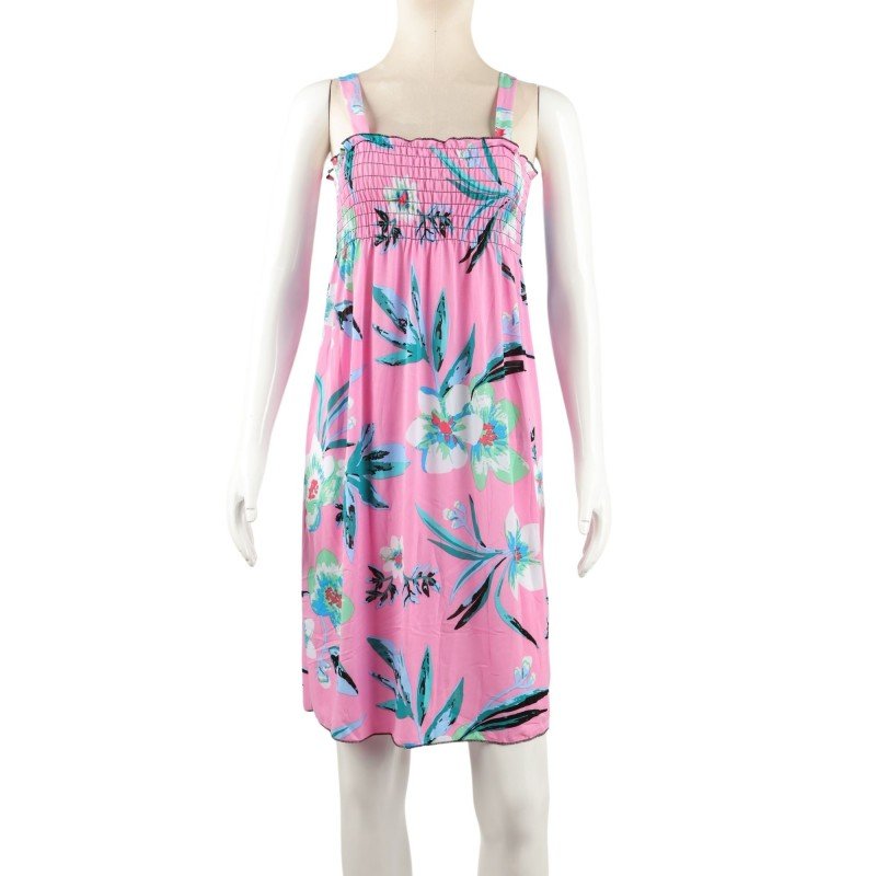 أنوثة ناعمة… وراحة خفيفة كل اليوم. فستان نسائي قصير بلون وردي مزين بنقشة أوراق وورود ناعمة، بتصميم بدون أكمام وقَصّة مريحة وانسيابية، مثالي للبيت أو للّبسة الصيفية الخفيفة.