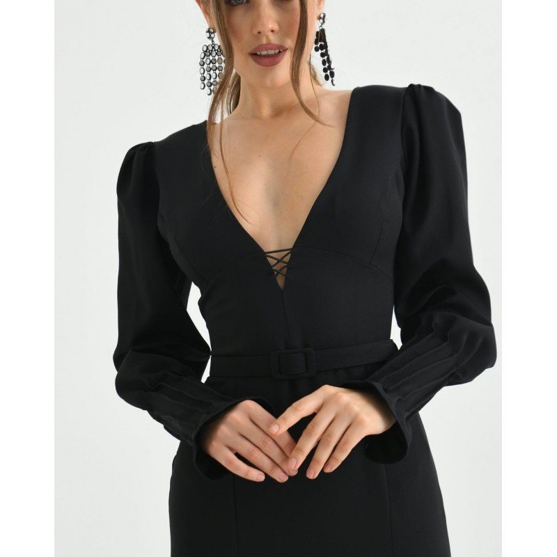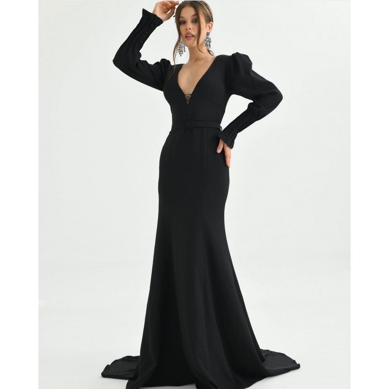 فستان طويل من الخلف بأكمام طويلة دانتيل لون أسود