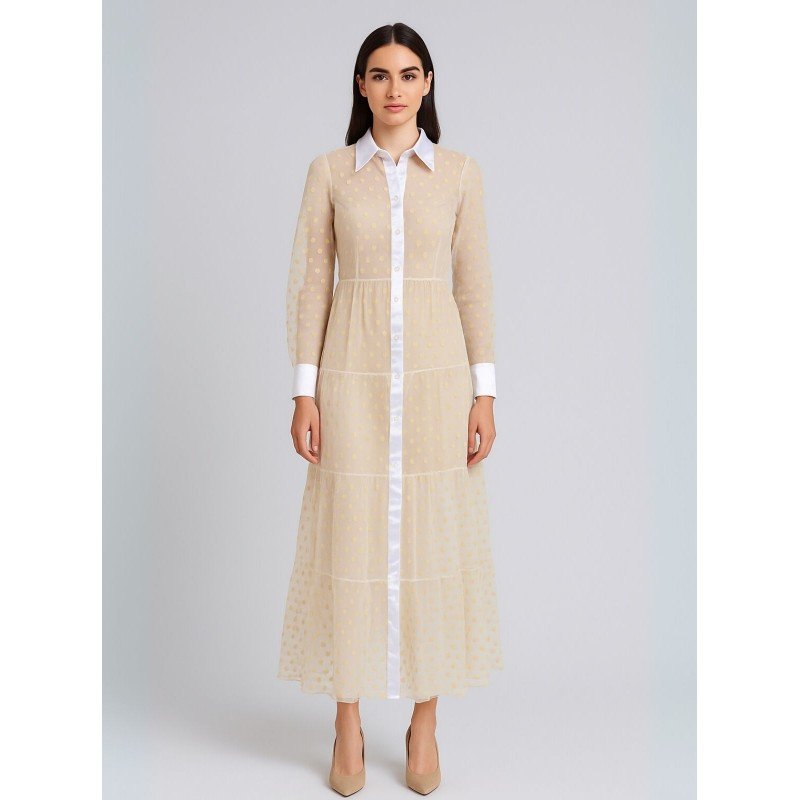 فستان طويل للنساء لون بيج