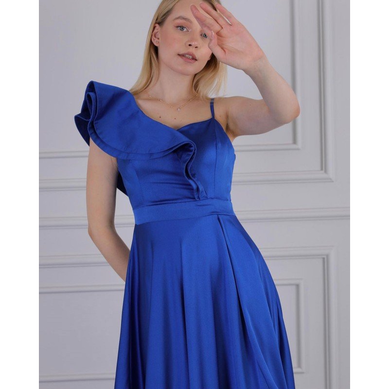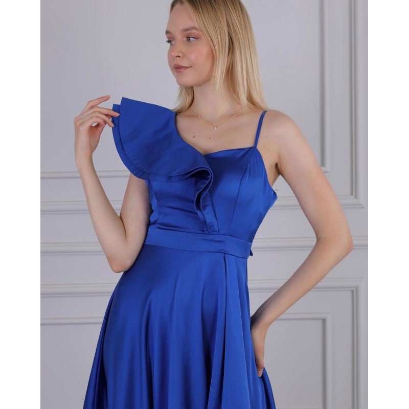 فستان طويل لون نيلي