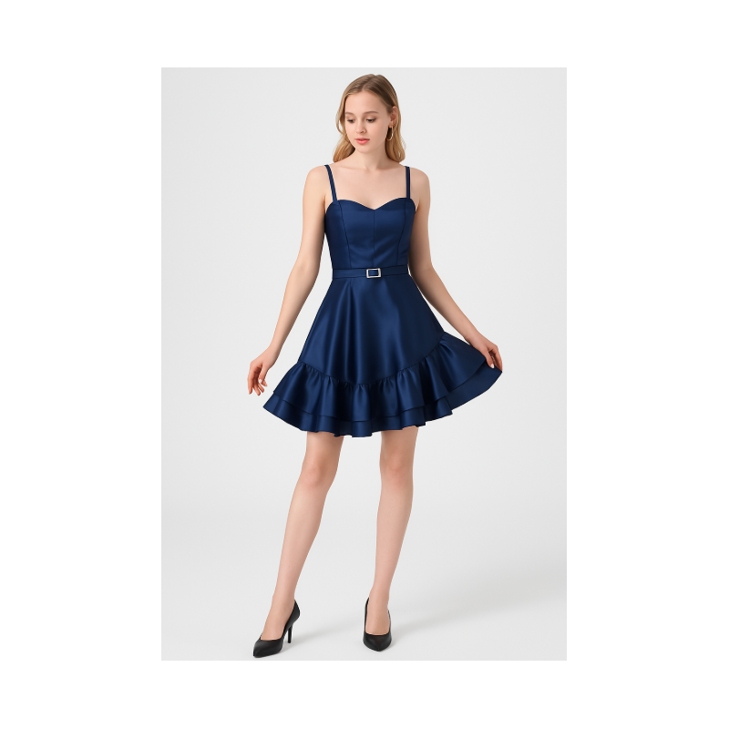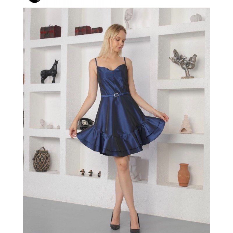 ✅فستان قصير مع سحاب من الخلف وتصميم قشاط على الخصر.
