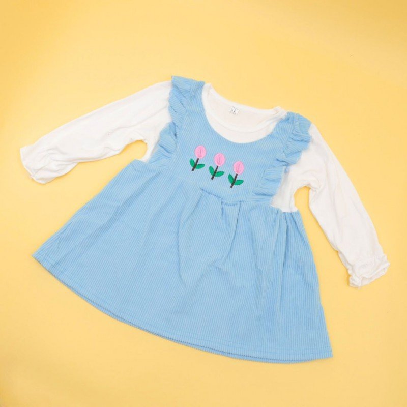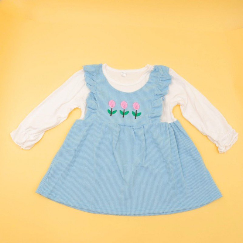 فستان للأطفال لون أزرق وأبيض