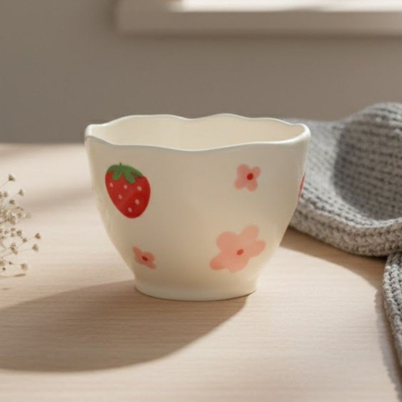 المميزات: ✅ تصميم هاند ميد فريد لكل قطعة ✅ بدون يد لستايل عصري وبسيط ✅ مزين برسومات ورود وفراولة لطيفة ✅ شكل أنيق يناسب الاستخدام اليومي ✅ خامة مريحة للمسك وخفيفة الوزن ✅ مناسب للقهوة، الشاي والمشروبات الساخنة ✅ مثالي للاستخدام المنزلي أو كقطعة ديكور ✅ خيار جميل للهدايا لمحبي الأعمال اليدوية