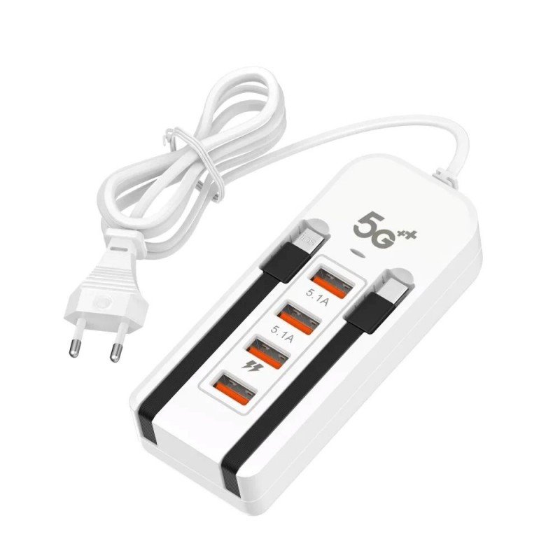 قاعدة شحن 66 واط مع منفذين USB ومنفذين PD مع 2 كيبل مدخل PD – إمكانية شحن أجهزة متعددة في نفس الوقت