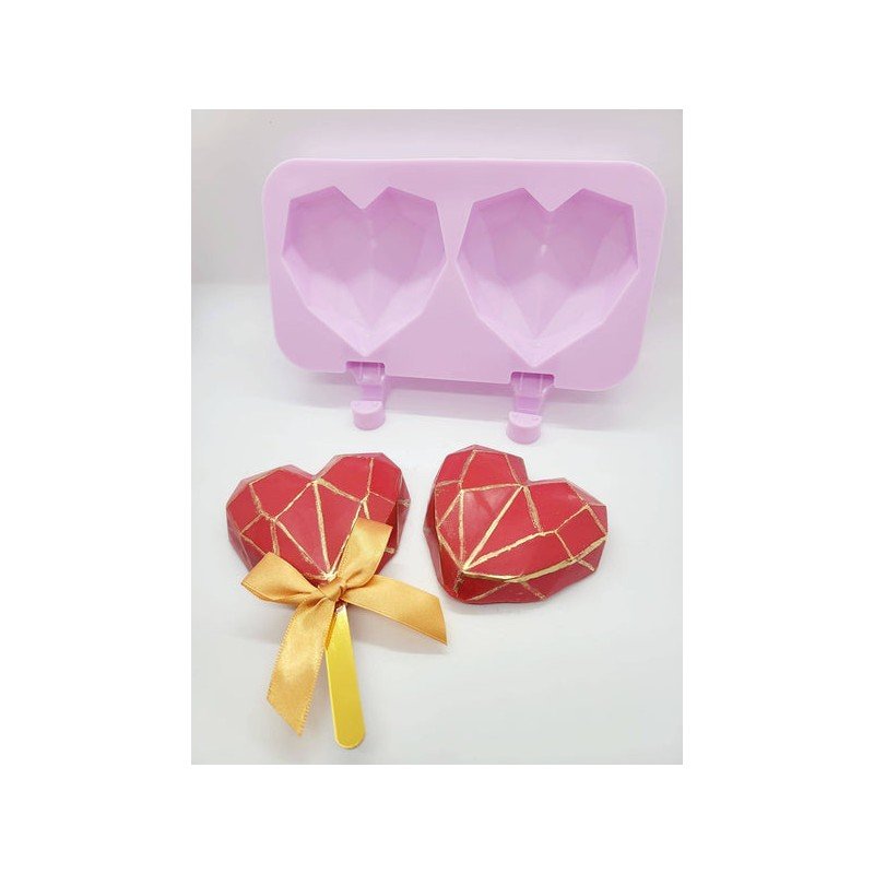 قالب بوظة سيليكون 2 خانة شكل القلب الماسي