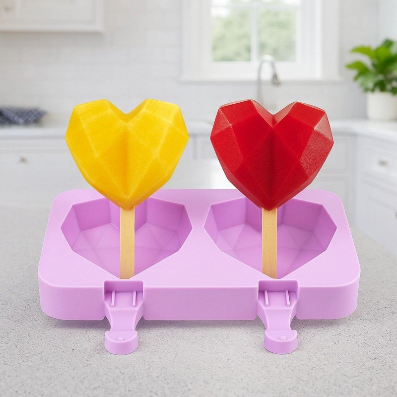 استمتعي بتحضير المثلجات الرائعة مع قالب البوظة السيليكوني بشكل قلب ماسي، وأضيفي لمسة من الحب والأناقة في كل لقمة!