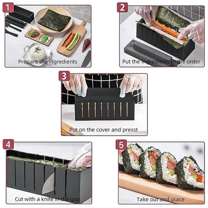 سهولة الاستخدام: تتيح لك العلبة تحضير السوشي بسرعة وسهولة، فقط ضع المكونات داخل القالب واضغط للحصول على الشكل المثالي.