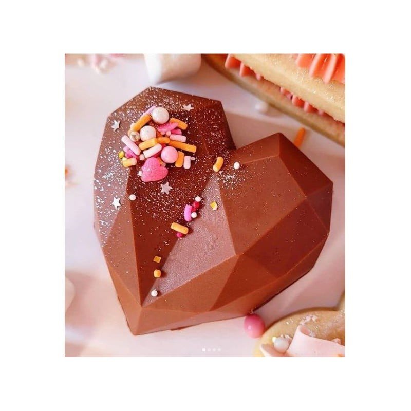 التصميم: يتميز القالب بتصميم قلب ماسي فريد، ما يجعله مثاليًا لتحضير شوكولاتة، حلوى أو حتى كيكات بمظهر أنيق وجميل.