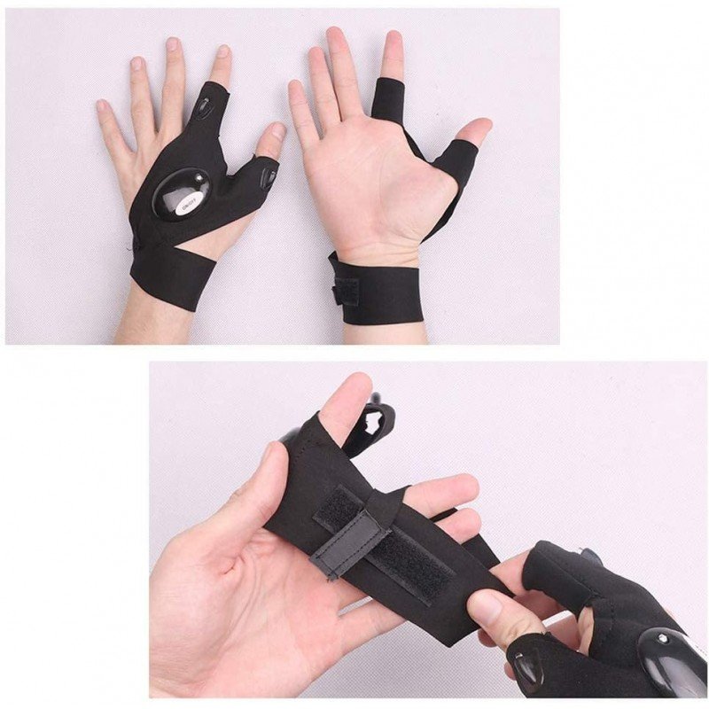 قفاز كفوف مصباح يدوي LED كف واحد لليد اليمنى – مثالي عند الجري الليلي أو في التخييم وركوب الدراجات لون أسود
