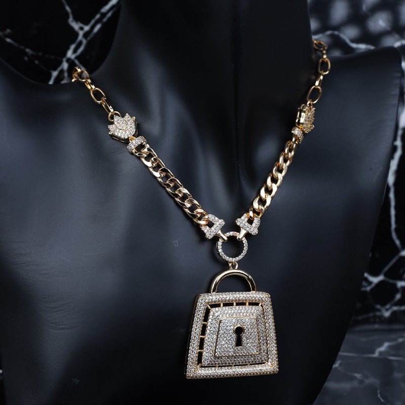 ✅ التصميم:قلادة ذهبية أنيقة بتصميم قفل مفتاح مرصعة بأحجار زركون لامعة، مما يضفي لمسة من الرومانسية والجمال الفاخر على التصميم.