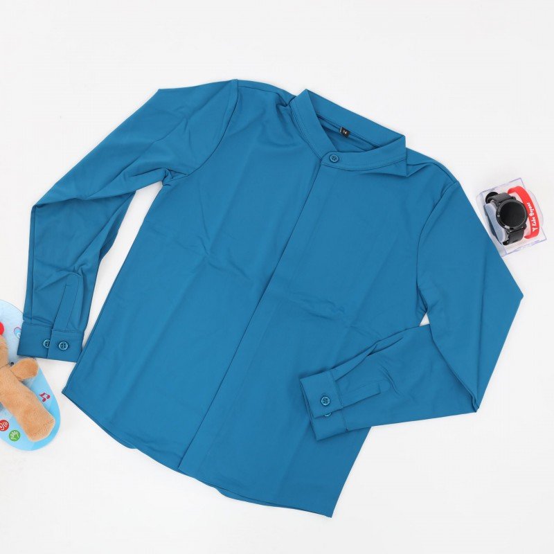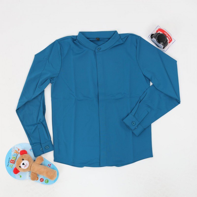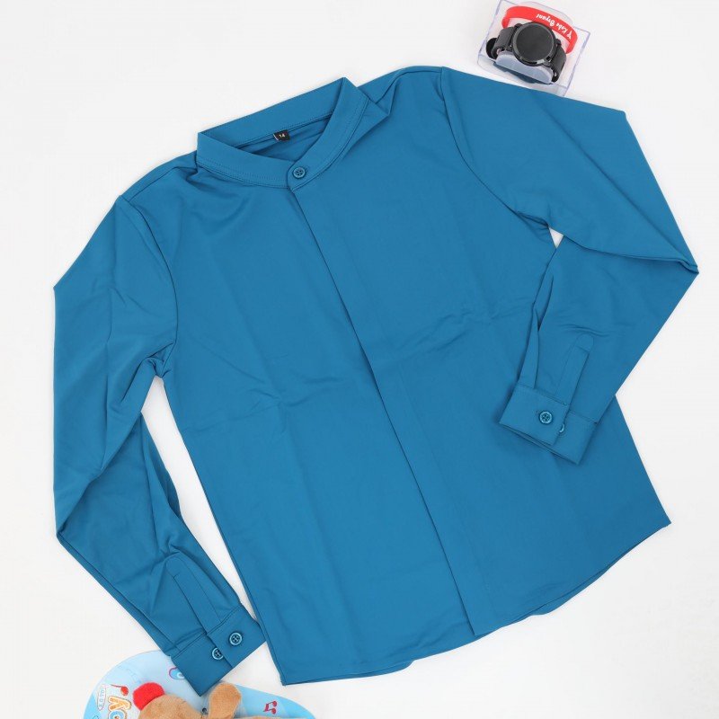قميص بدون قبه بأكمام طويلة للأطفال لون ازرق