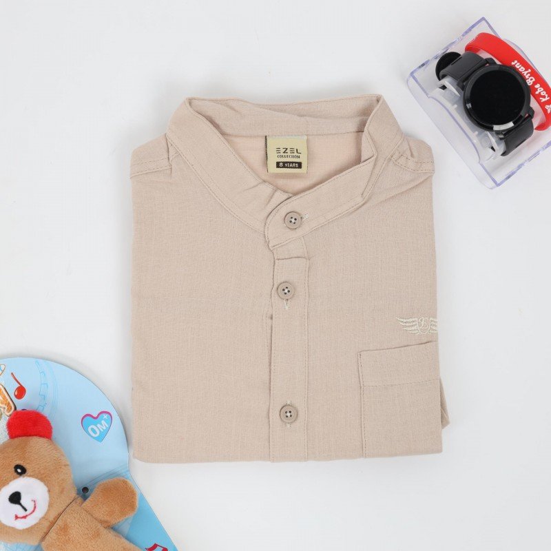 قميص بدون قبه بأكمام طويلة للأطفال لون بيج