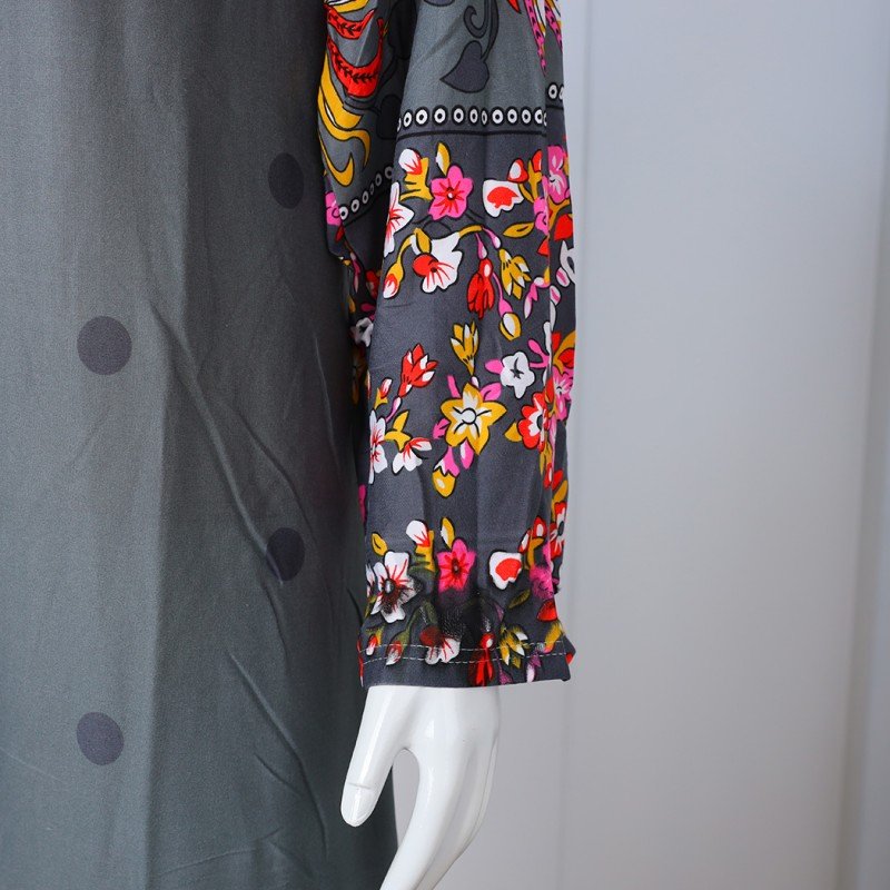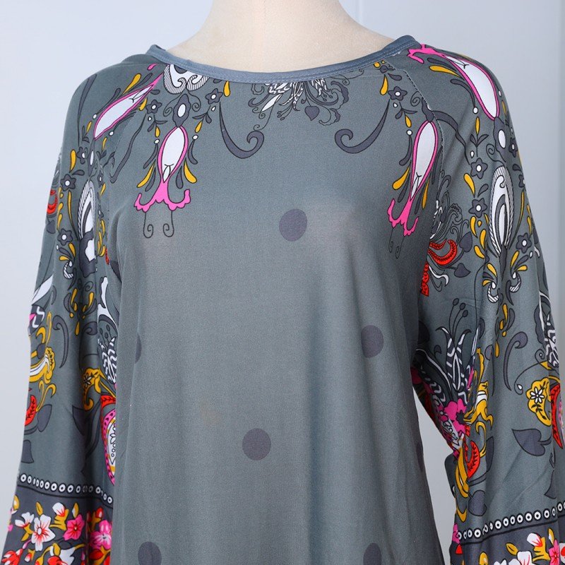 قميص بيتي للنساء كم طويل لون سكني غامق