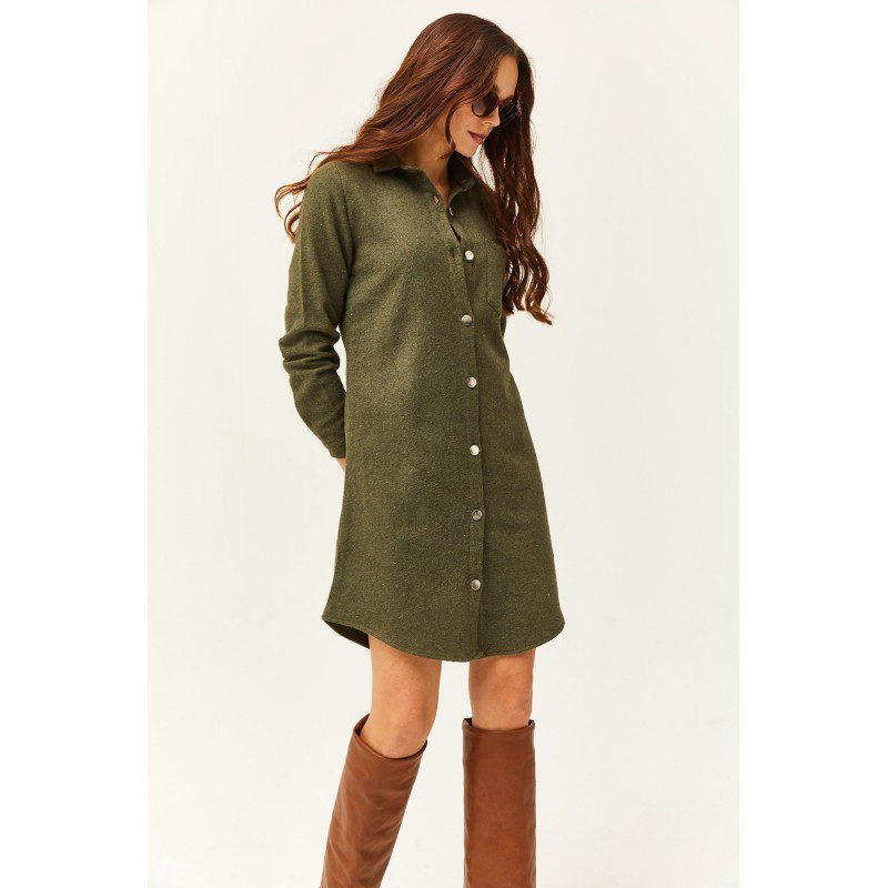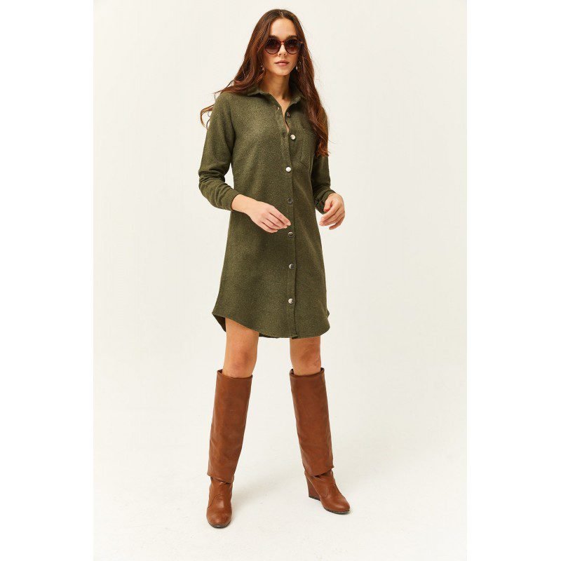 Olalook Women’s Khaki Stash Shirt Dress فستان قميص