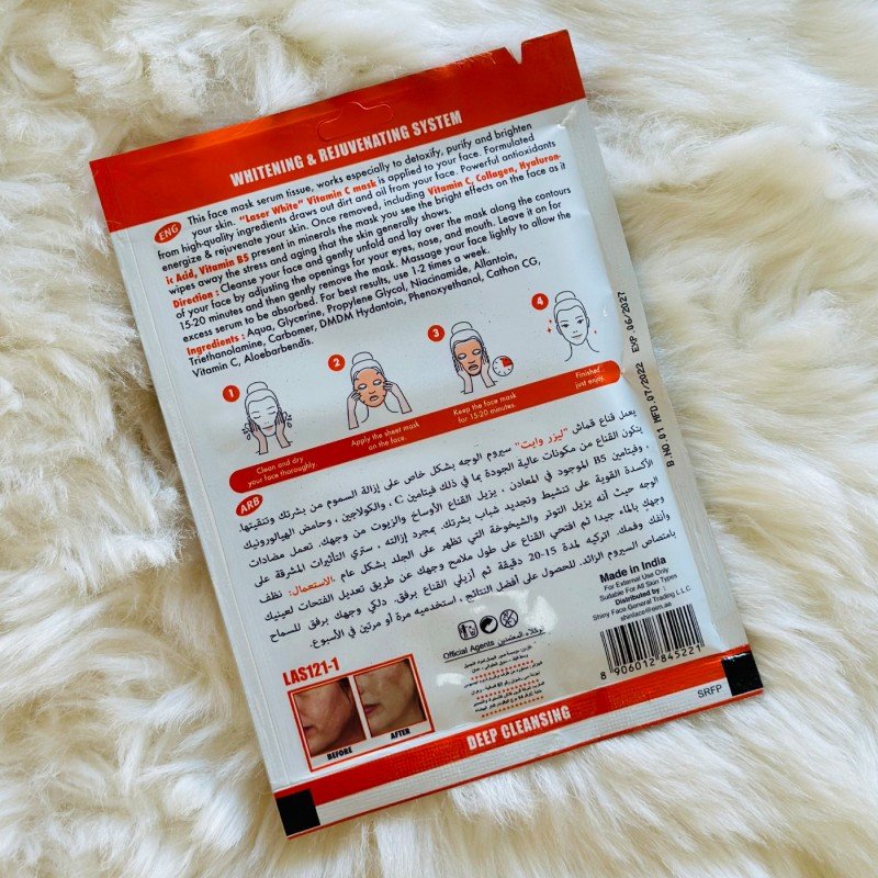 ✅ قناع ورقي سيروم فيتامين سي للوجه لتبييض وتجديد البشرة