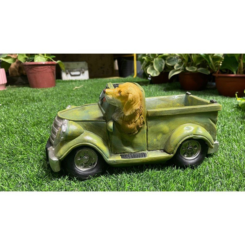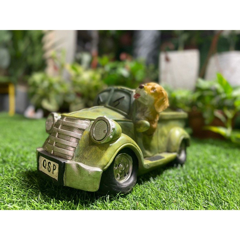 سيارة الجرو اللطيفة مصنوع بالنقش اليدوي من مادة الراتنج الذي يدوم طويلاً. يمكنها مقاومة معظم عوامل الطقس الخارجية؛ أداء مقاوم للماء جيد جدًا، ولكن أيضًا يمكن أن يمنع التشقق والبهتان.
