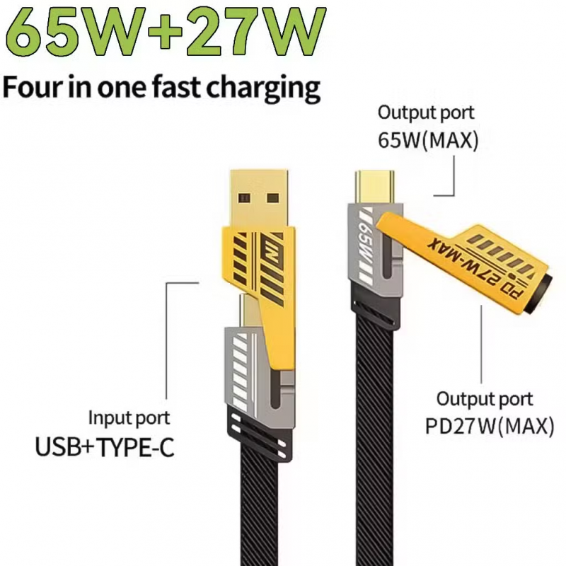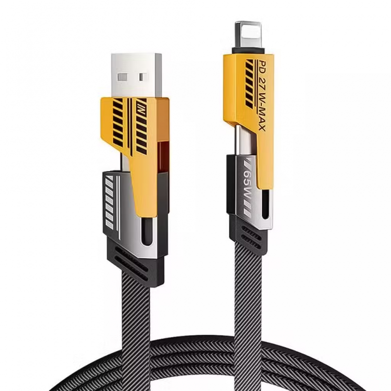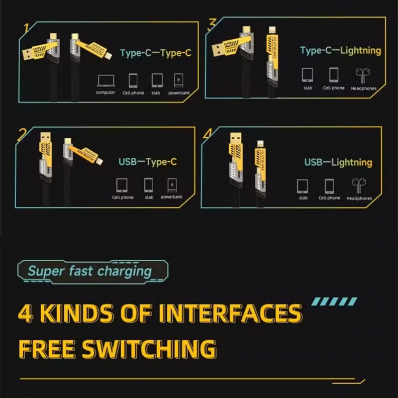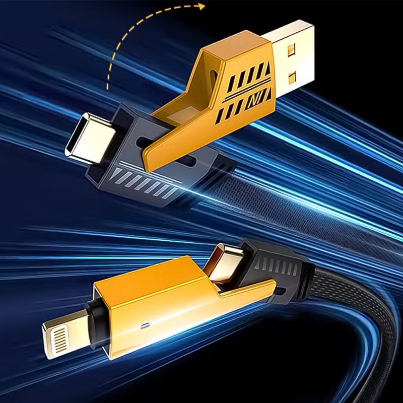 ✅تصميم 4 في 1: يتميز بكابل بيانات معدني سريع قابل للتحويل مع موصلات USB-C وUSB-A مما يسمح لك بشحن أجهزة متعددة في وقت واحد.