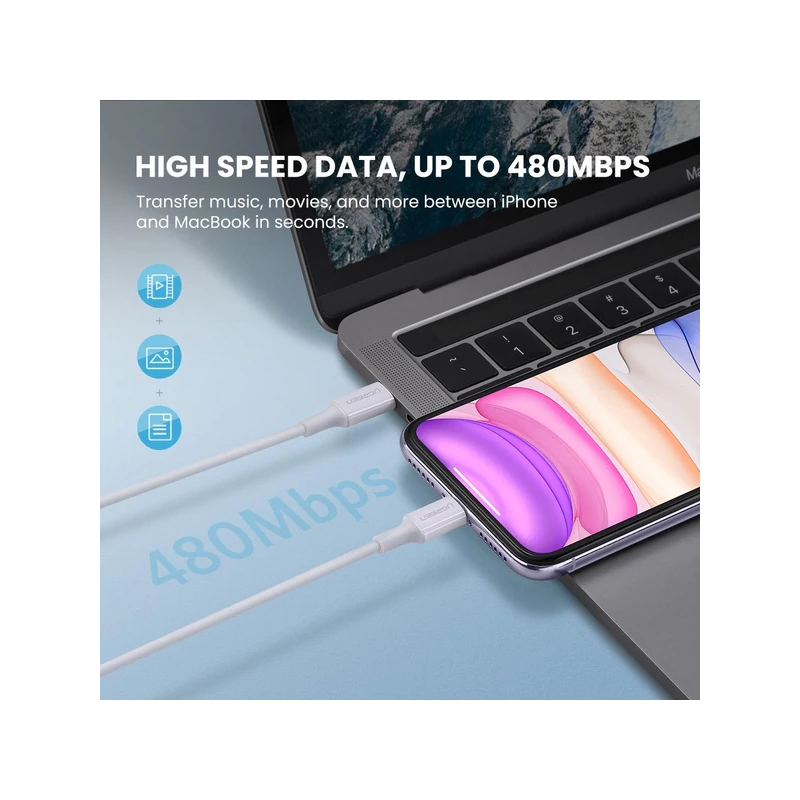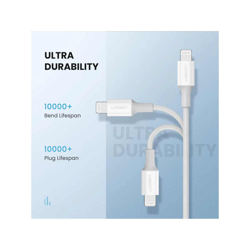 ✅ التصميم:كابل شاحن من “جي جرين” (UGREEN) بمدخل USB-C إلى Lightning بطول 1 متر، يتميز بتصميم أنيق وأسطواني مرن لسهولة الاستخدام والتخزين. لونه الأبيض العصري يضيف لمسة من الأناقة.