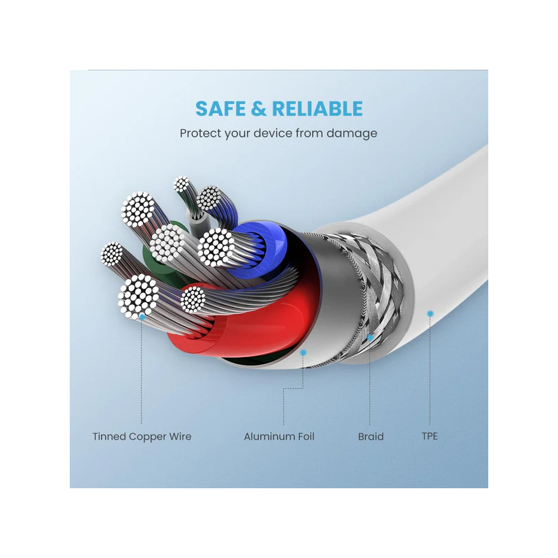 التصميم المضاد للتشابك: الكابل مزود بغطاء مقاوم للتلف يمنع التشابك ويطيل عمر المنتج.