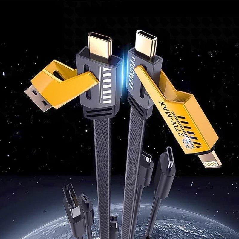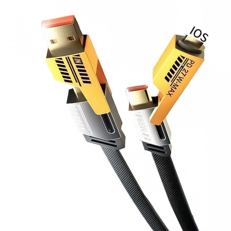 ✅ كابل شحن سريع 4 في 1 بقدرة 65 واط وطول 1 متر يناسب جميع أنواع الأجهزة. ✅ يحتوي على 4 رؤوس مختلفة لتوصيل أجهزة متعددة في نفس الوقت (Type-C، Lightning، Micro USB). ✅ يدعم الشحن السريع ونقل البيانات بكفاءة عالية وأمان تام. ✅ تصميم عملي ومتين يتحمل الاستخدام اليومي المتكرر دون تلف. ✅ مناسب للسفر والاستخدام اليومي لتوفير الوقت وتجنب تشابك الأسلاك. ✅ خامة قوية مقاومة للانثناء والقطع لضمان عمر طويل وأداء مستقر.