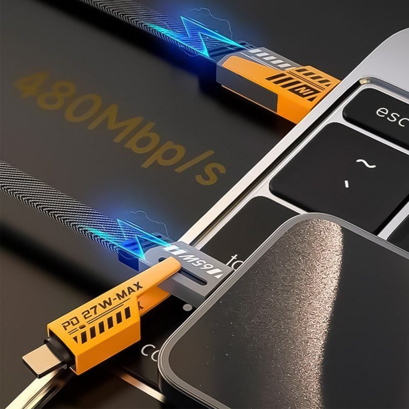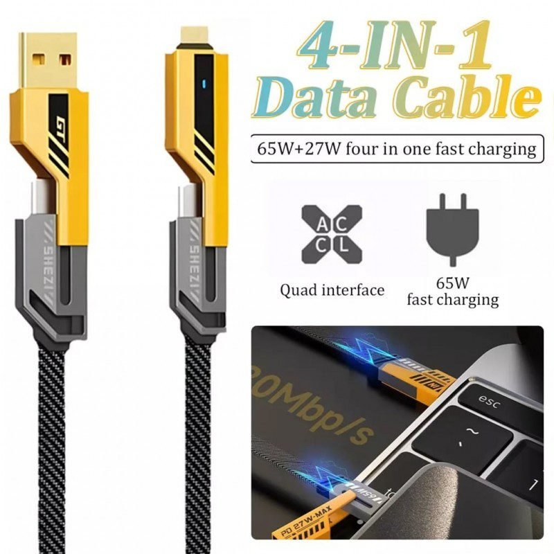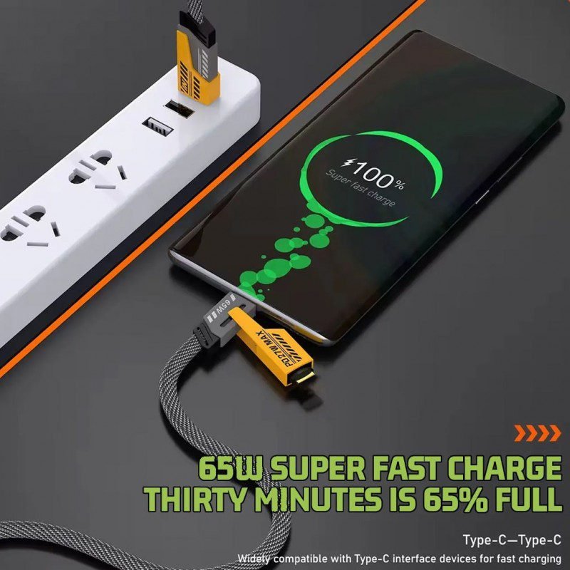كابل شحن سريع 65 واط 4 في 1 لكافة أنواع الأجهزة طول 1 متر