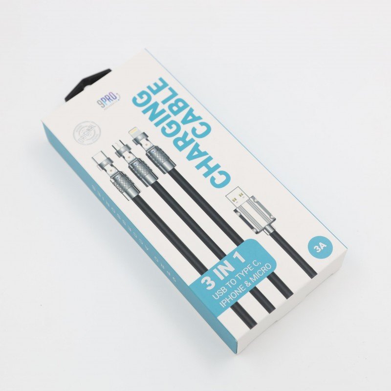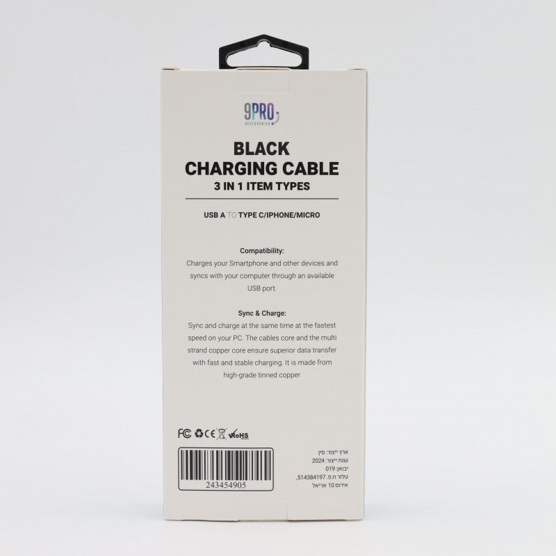 ثلاثة مخارج:يدعم الكابل ثلاثة مخارج (Micro-USB، iPhone، Type-C) مما يسمح لك بشحن مجموعة متنوعة من الأجهزة في وقت واحد.