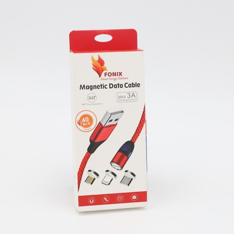 كابل فونيكس رأس مغناطيسي بثلاث منافذ 1 متر لون أسود- FONIX MAX.3A Charging Magnetic Data Cable 360 Black