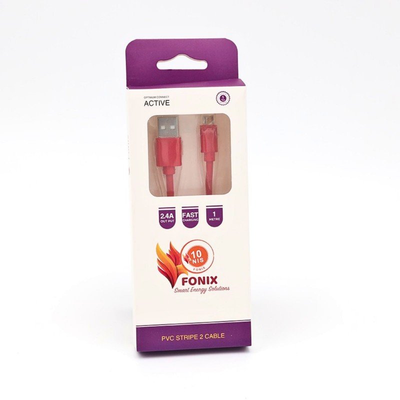 ✅ التصميم: كابل شحن من Fonix بطول 1 متر، يتميز بتصميم مرن وأنيق مع تغليف PVC لتحسين المتانة.