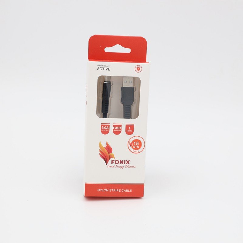 ✅ التصميم: كابل من Fonix بطول 1 متر، مصنوع من مادة نايلون مقاومة للتلف والتشابك، مع شرائط ناعمة تجعل من السهل استخدامه وتنظيمه.