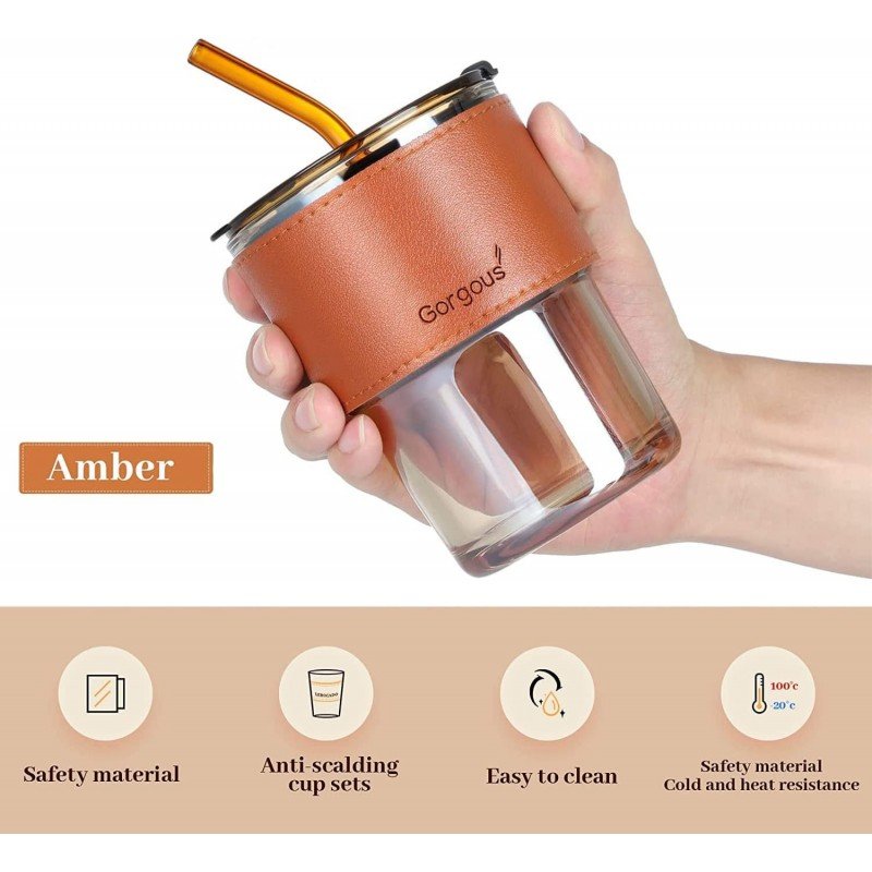 ✅ تصميم أنيق يجمع بين الزجاج الشفاف واللون العسلي الفاخر.✅ مزوّدة بجلدة حماية مانعة للانزلاق ومريحة عند الحمل.✅ غطاء محكم يمنع الانسكاب ويحافظ على نظافة المشروب.✅ مصّاصة قابلة لإعادة الاستخدام بنفس اللون لإطلالة متناسقة.✅ مناسبة للعصائر، القهوة الباردة، والمشروبات اليومية داخل وخارج المنزل.