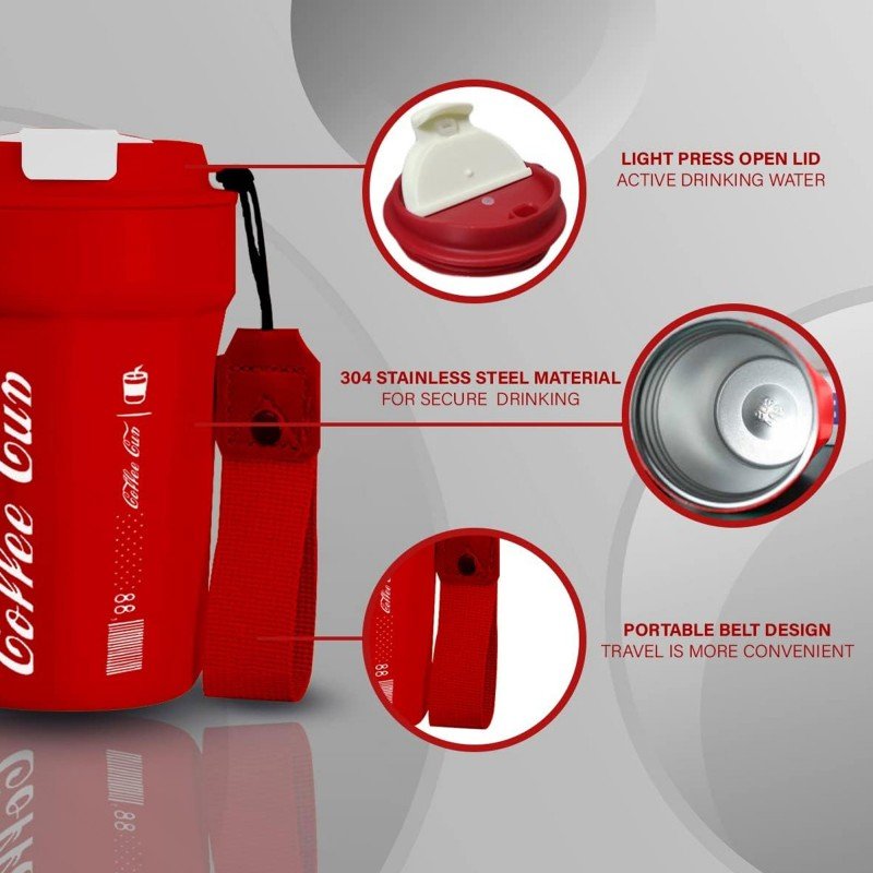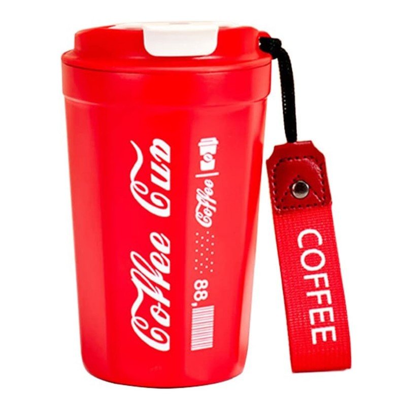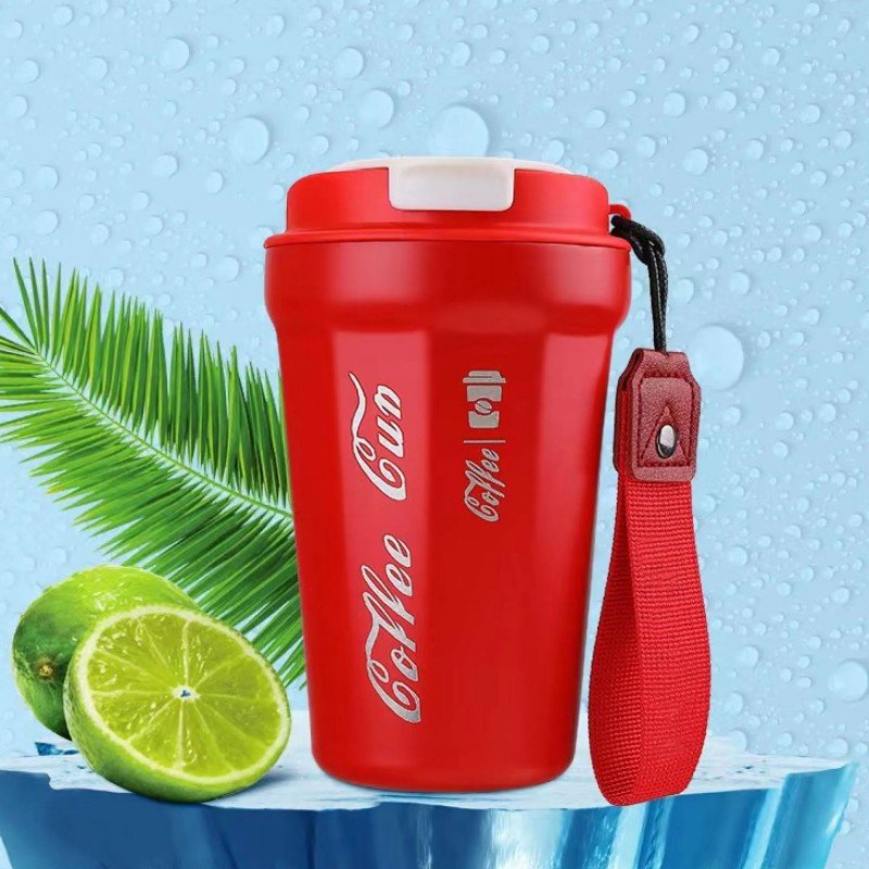 ✅كأسة ستانس مع غطاء حجم 350 مل لون أحمر.