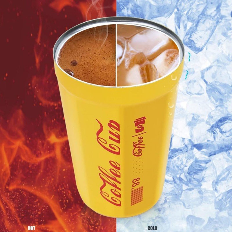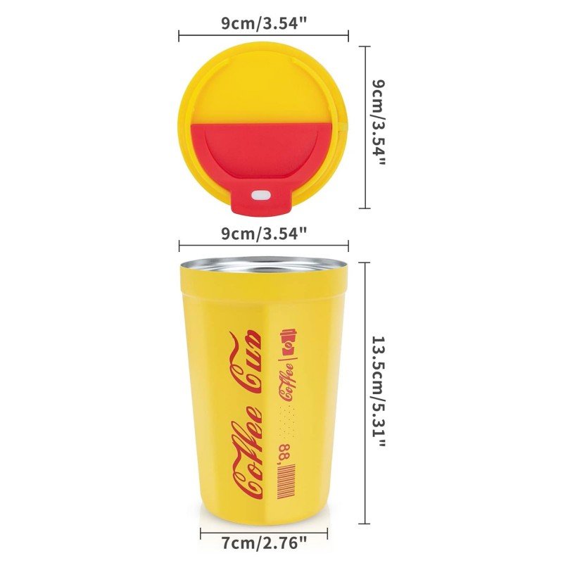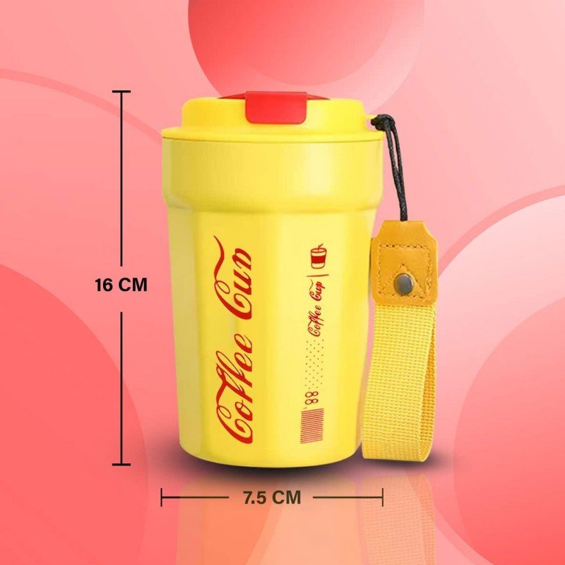 ✅كأسة ستانس مع غطاء حجم 350 مل لون أصفر.