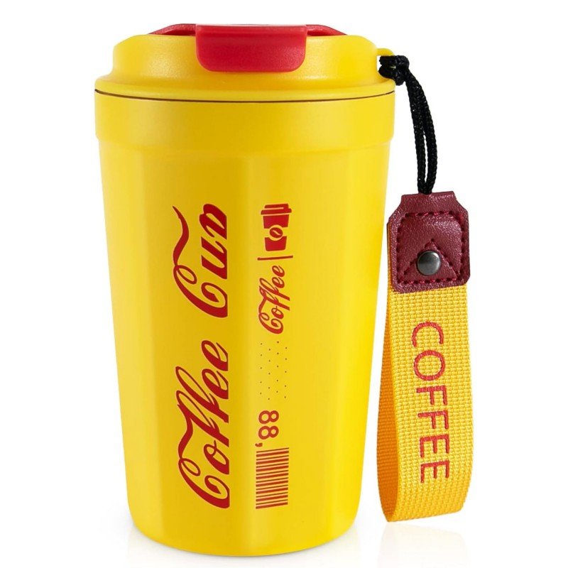 ✅تصميم عصري – يتميز مج القهوة للسفر بتصميم ثماني الأضلاع ويحتوي على حبل قصير بطول 17 سم لسهولة الحمل.