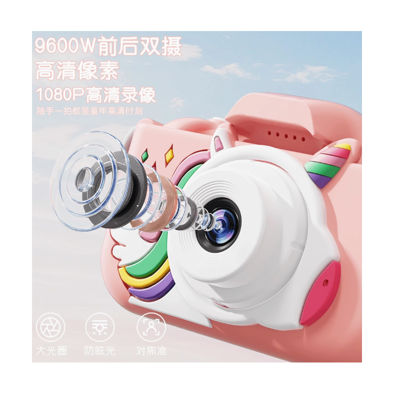 كاميرا أطفال الكترونية بتصميم يونيكورن لون زهري