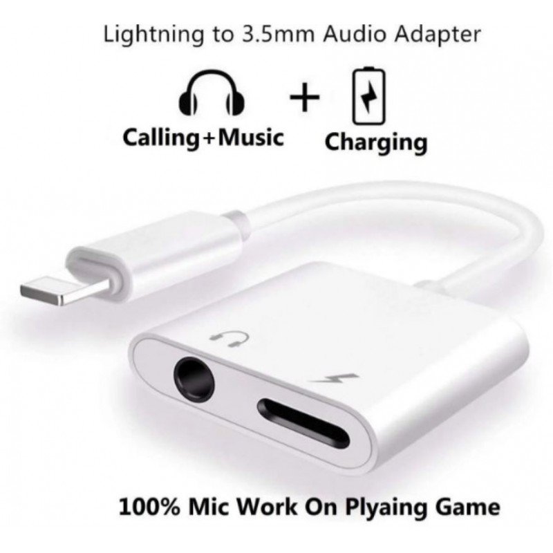 كيبل تحويل صوت من ايفون الى اوكس 3.5 ملم Lightning to 3.5 mm Headphone – لون أبيض
