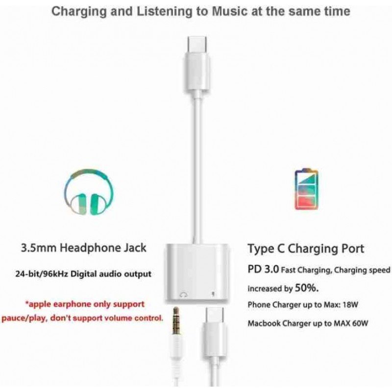 كيبل تحويل صوت من تايب سي الى اوكس 3.5 ملم الطول 10 سم
