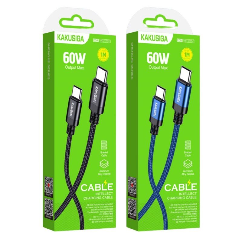 كيبل شحن 1 متر – الطرفين منفذ Type C – قوة 60 واط – ماركة Kakusiga