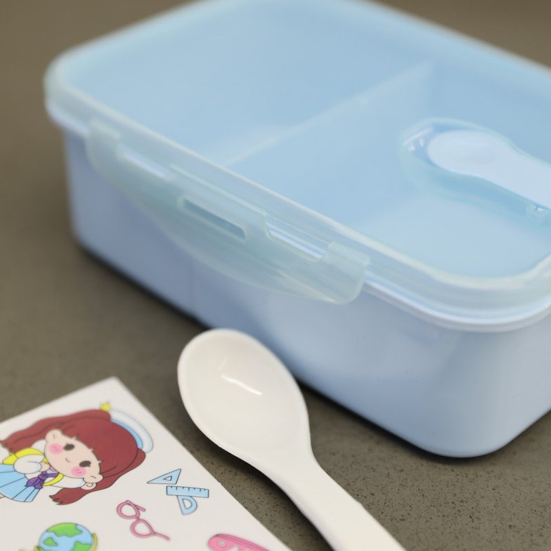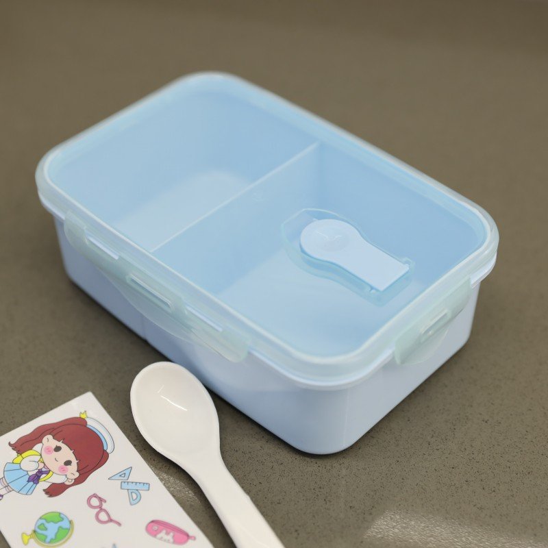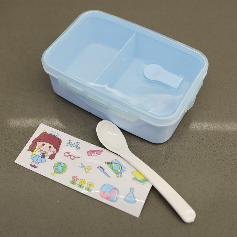 لانش بوكس بلاستيك مع ملعقة حجم 16.5×11 سم لون أزرق