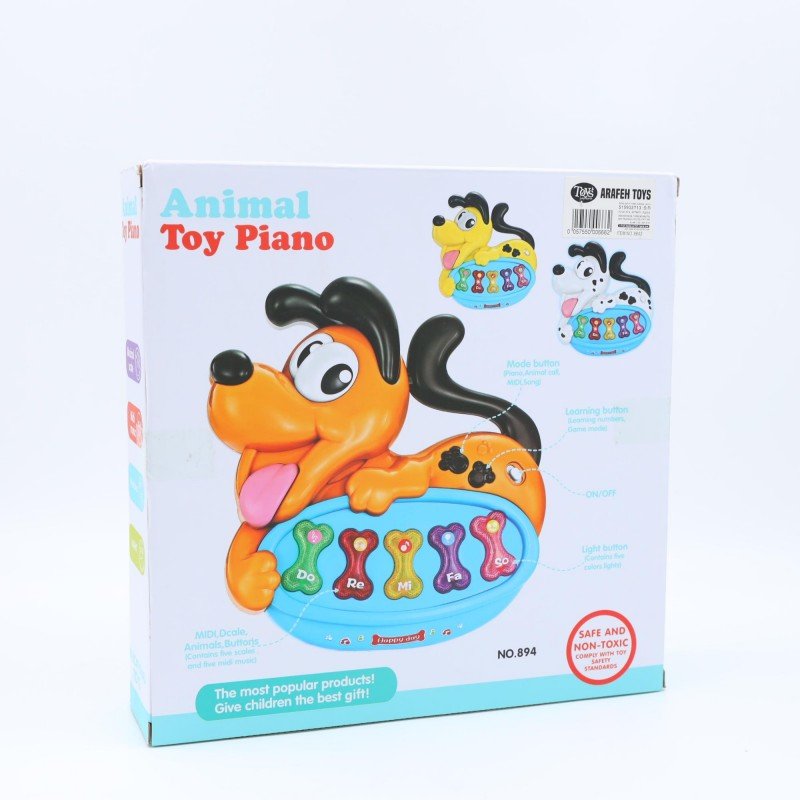 الوصف: لعبة بيانو تعليمية بتصميم كلب لطيف ولون برتقالي جذاب، تجمع بين الموسيقى واللعب التفاعلي، وتساعد الطفل على التعلم بطريقة ممتعة وآمنة. تحتوي على أزرار موسيقية ملوّنة بأشكال عظام تصدر نغمات وأصوات مرحة تجذب انتباه الطفل.