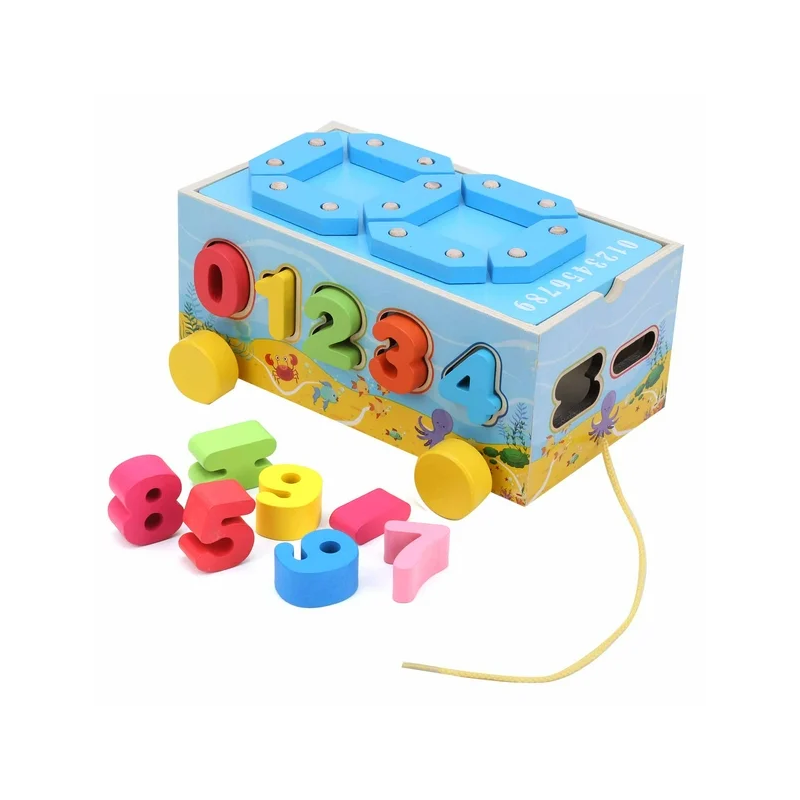 لعبة خشبية تعليمية على شكل سيارة تساعد الطفل على تعلّم الأرقام والألوان بطريقة ممتعة وآمنة. تحتوي على أرقام ملوّنة يمكن إدخالها في الفتحات المخصّصة لها، مما يساعد على تطوير مهارات التنسيق بين العين واليد، وتعزيز الذاكرة والتركيز. مصممة بعجلات لتُسحب بسهولة كعربة صغيرة مما يزيد من متعة اللعب. مصنوعة من مواد آمنة وصديقة للبيئة، مناسبة للأطفال من عمر سنتين فما فوق.