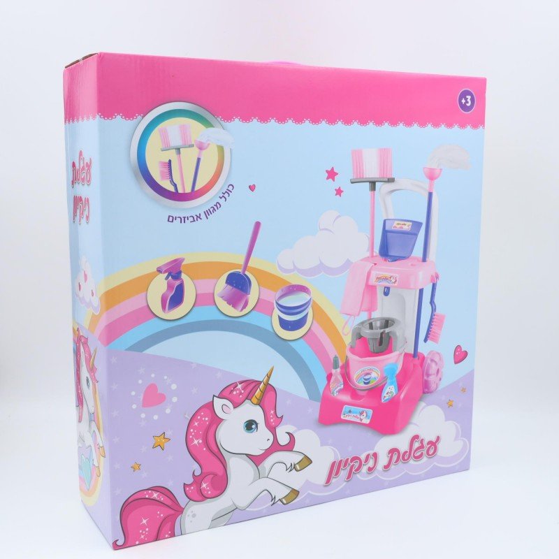 لعبة عربة تنظيف مميزة بتصميم طفولي جميل مزين بملصقات UNICORN المحبوبة، وألوان زهريّة جذابة تشجع الأطفال على اللعب التخيلي وتقليد الكبار بطريقة ممتعة وآمنة. مثالية لتنمية حس المسؤولية وتنظيم اللعب لدى الأطفال.
