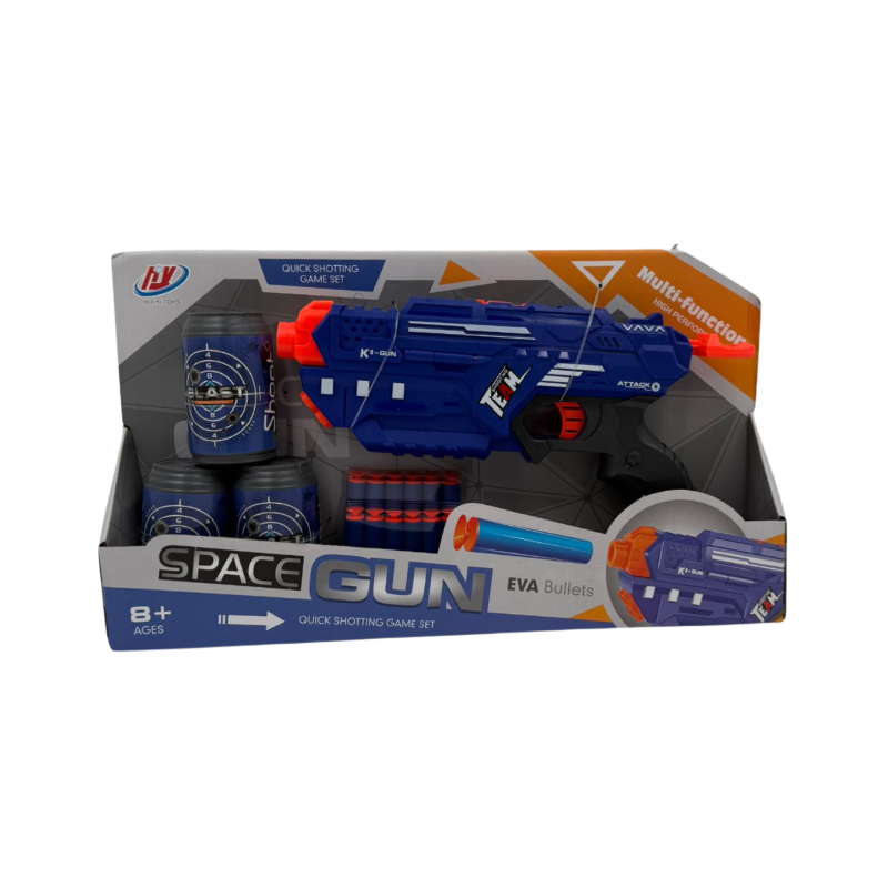 لعبة مسدس تصويب فلين ممتعة وآمنة للأطفال، تأتي بتصميم عصري مستوحى من مسدسات الفضاء، وتعمل بآلية إطلاق يدوية باستخدام رصاص فلين (EVA) خفيف وآمن. تساعد الطفل على الاستمتاع باللعب الحركي وتنمية مهارات التركيز ودقة التصويب بطريقة مسلية.