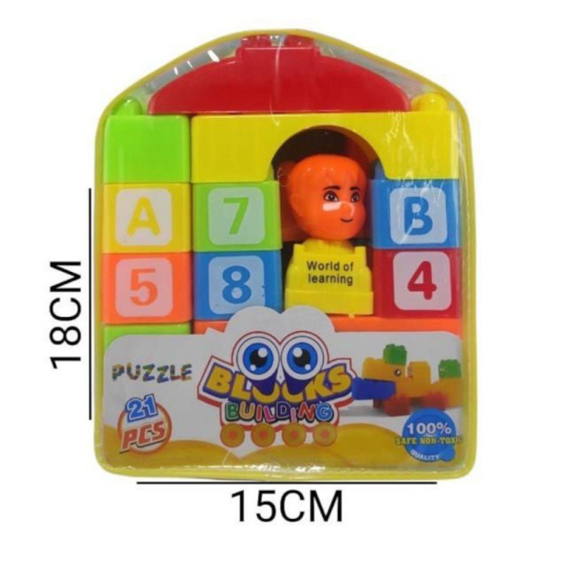 ✅ شنطة مكعبات بلاستيك اطفال 21 قطعة.