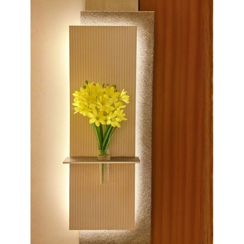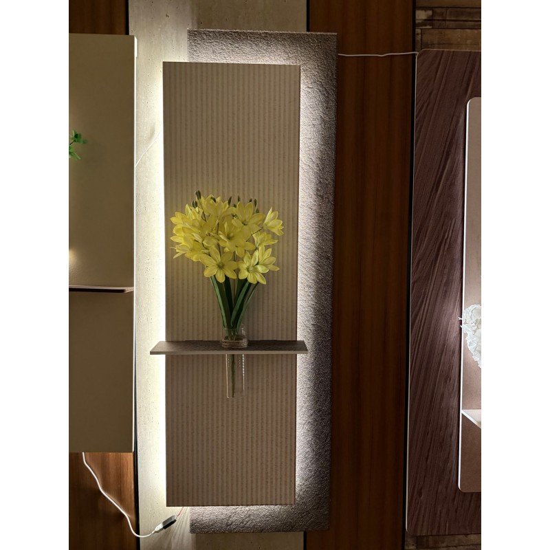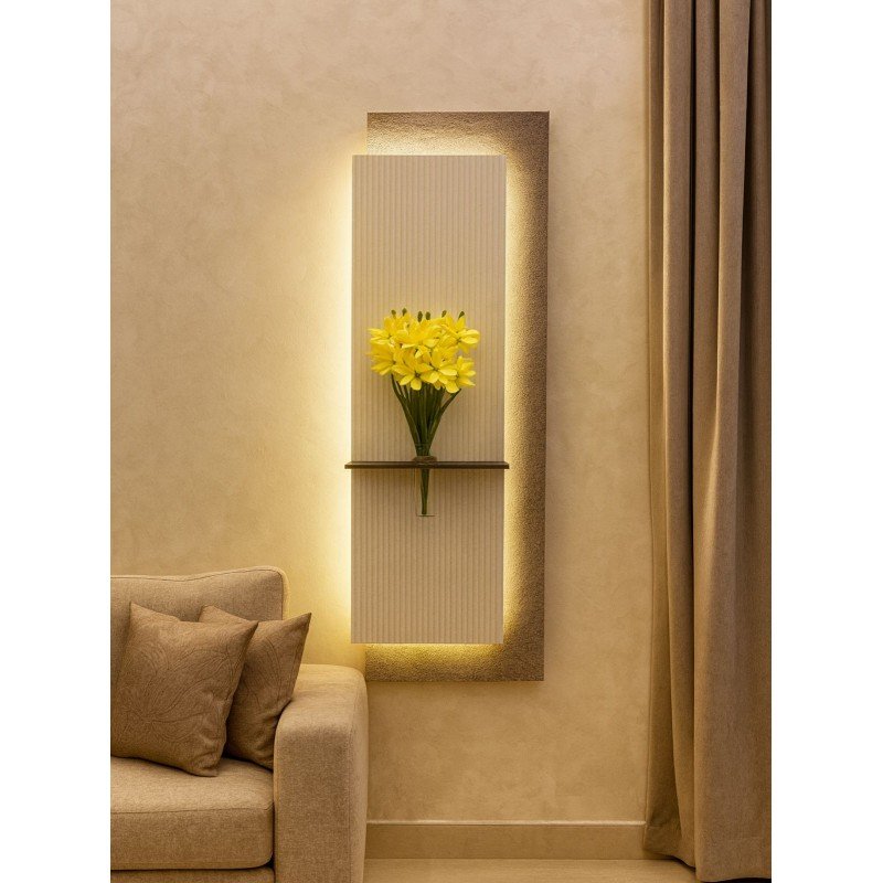 لوحة خشبية مضيئة بلمسة فنية أنيقة لوحة فاخرة تجمع بين الخشب المصقول والرمل المدهون لتمنحك مظهراً دافئاً وطبيعياً، مزودة بمزهرية زجاجية شفافة لإضافة لمسة ديكور ناعمة. تأتي مع ريموت للتحكم بالإضاءة ووصلة USB لتسهيل التشغيل. المقاس: ‎50×150 سم مثالية لتزيين الجدران وإضفاء أجواء راقية في غرف المعيشة أو المكاتب أو مداخل المنزل.