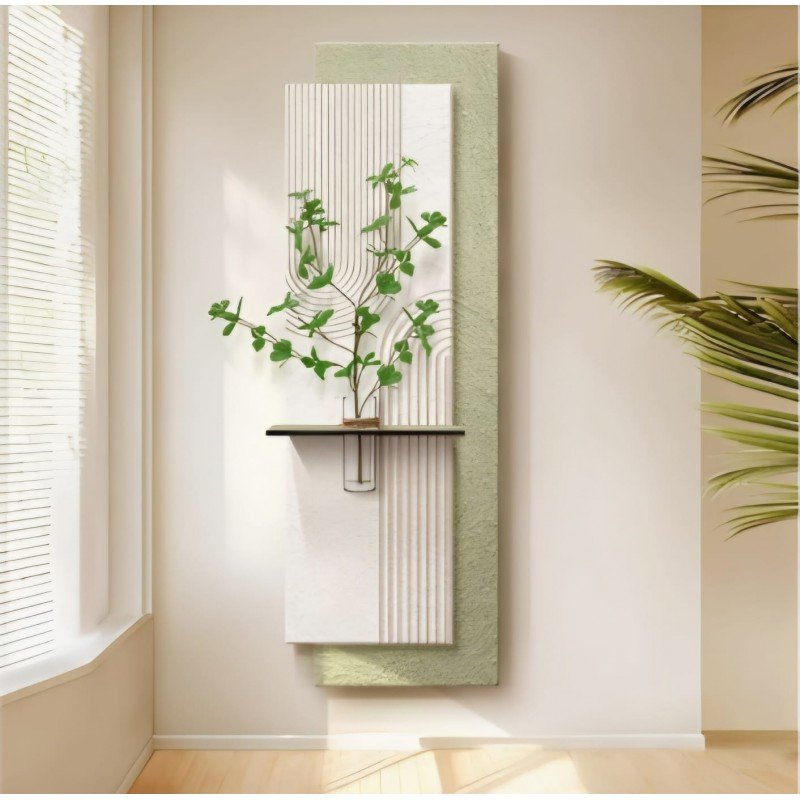 لوحة خشبية مضيئة بلمسة فنية أنيقة لوحة فاخرة تجمع بين الخشب المصقول والرمل المدهون لتمنحك مظهراً دافئاً وطبيعياً، مزودة بمزهرية زجاجية شفافة لإضافة لمسة ديكور ناعمة. تأتي مع ريموت للتحكم بالإضاءة ووصلة USB لتسهيل التشغيل. المقاس: 50×150 سم مثالية لتزيين الجدران وإضفاء أجواء راقية في غرف المعيشة أو المكاتب أو مداخل المنزل.
