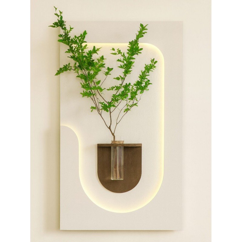 لوحة خشبية مضيئة بلمسة فنية أنيقة لوحة فاخرة تجمع بين الخشب المصقول والرمل المدهون لتمنحك مظهراً دافئاً وطبيعياً، مزودة بمزهرية زجاجية شفافة لإضافة لمسة ديكور ناعمة. تأتي مع ريموت للتحكم بالإضاءة ووصلة USB لتسهيل التشغيل. المقاس: 70×140 سم مثالية لتزيين الجدران وإضفاء أجواء راقية في غرف المعيشة أو المكاتب أو مداخل المنزل.