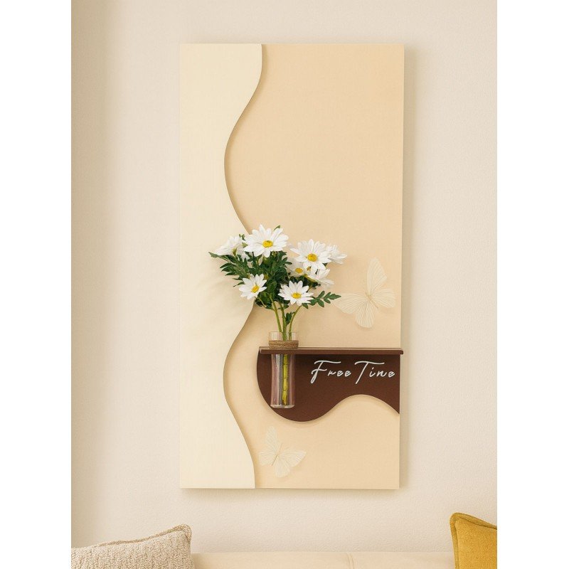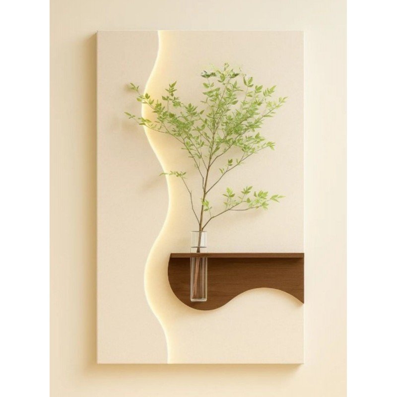 لوحة خشبية مضيئة بلمسة فنية أنيقة لوحة فاخرة تجمع بين الخشب المصقول والرمل المدهون لتمنحك مظهراً دافئاً وطبيعياً، مزودة بمزهرية زجاجية شفافة لإضافة لمسة ديكور ناعمة. تأتي مع ريموت للتحكم بالإضاءة ووصلة USB لتسهيل التشغيل. المقاس: ‎60×120 سم مثالية لتزيين الجدران وإضفاء أجواء راقية في غرف المعيشة أو المكاتب أو مداخل المنزل.