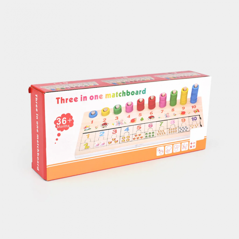 لوح تعليمي 3 في 1 للأطفال – Matchboard خشبي للتعلّم المبكر