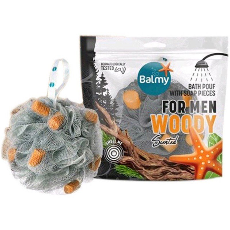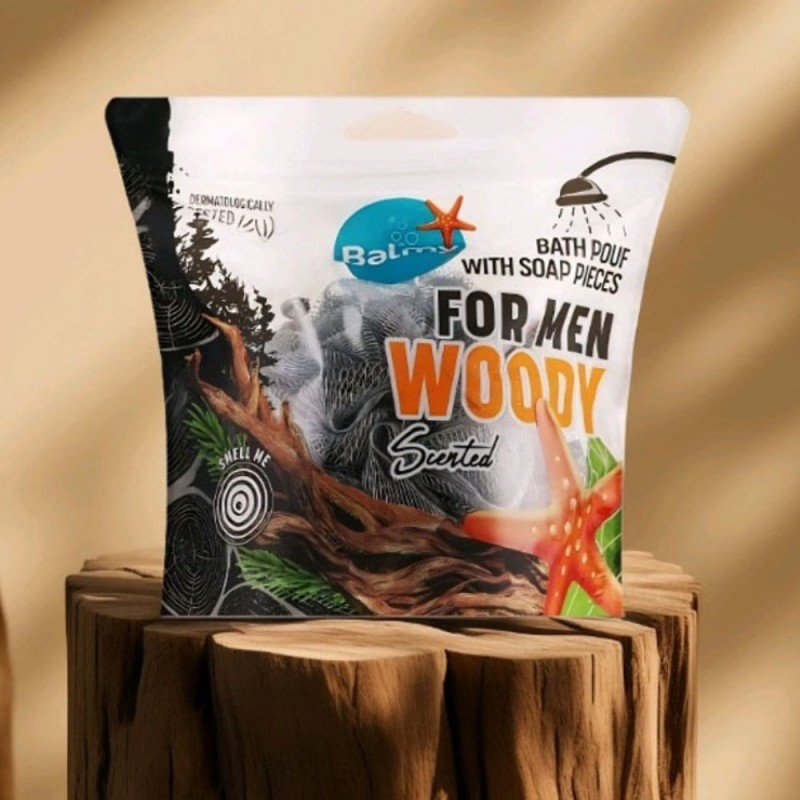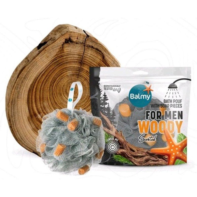 ليفة استحمام معطرة مع صابونة برائحة خشبية للرجال – بالمي